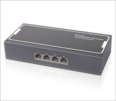 VAE334T 为 4 口的 Cat.5 音视频分配延长器,近端支持一组显示输出,远程支持 4 组同步显示输出并