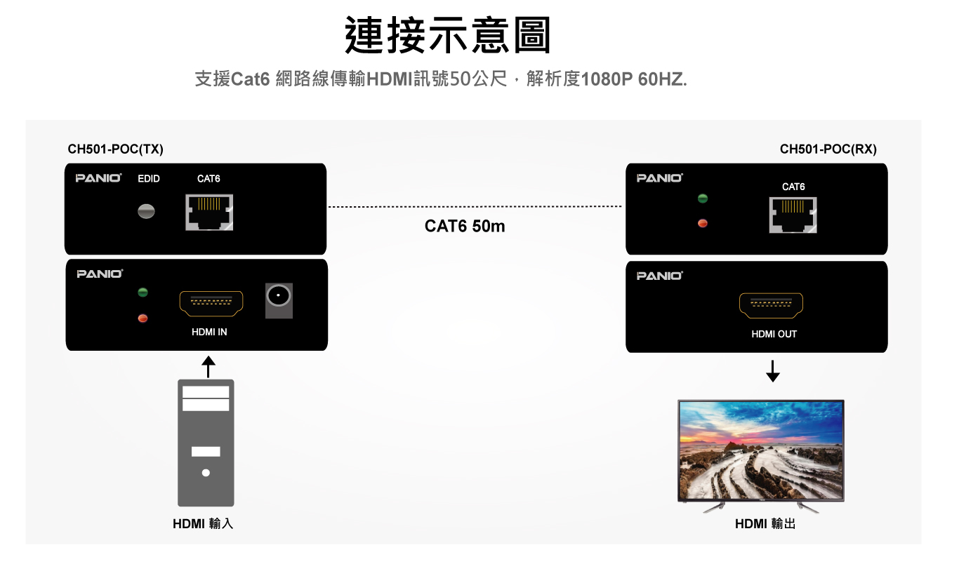 | 接收端介面 | 1 x HDMI輸出, 1 x RJ45 |