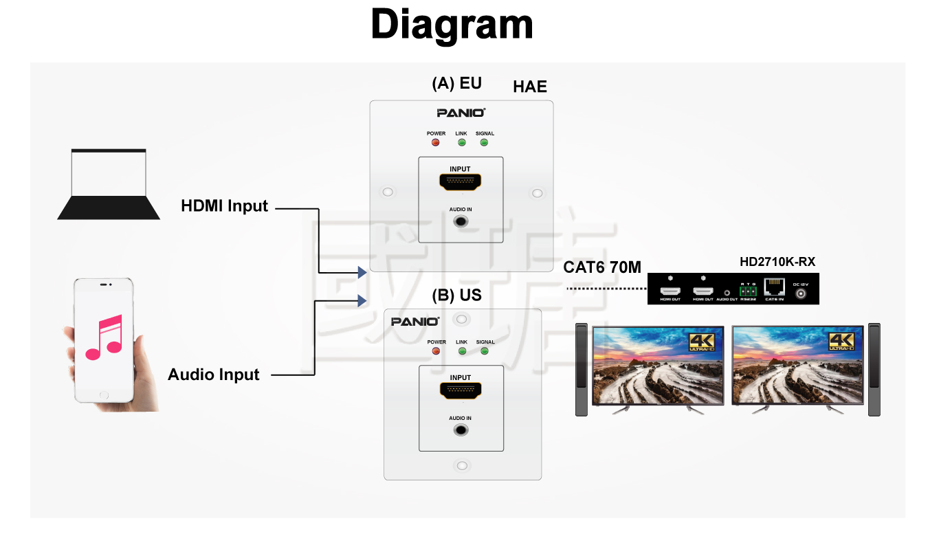 | Transmission distance (HAE_B) | Up to 70 meters under 1080P, and up to 35 meters under 4K 30Hz or 4K @60Hz. |