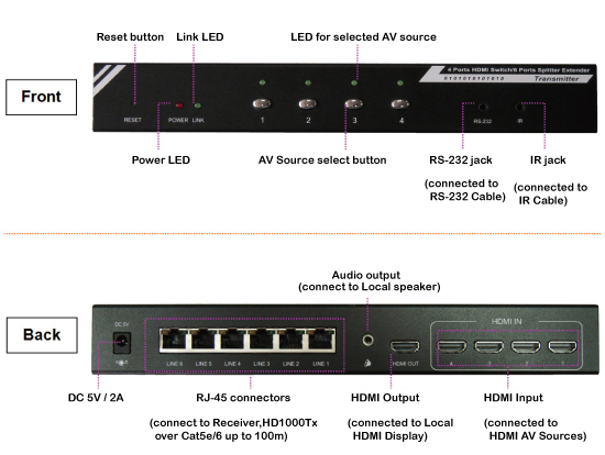 ¤ä´©4ÓHDMI¿é¤J·½¡A6Ó¥i¥HµâÃ쩵ªøªº¿é¥X¤f¡]³q¹Lcat.5e/6½u§÷¡^ |