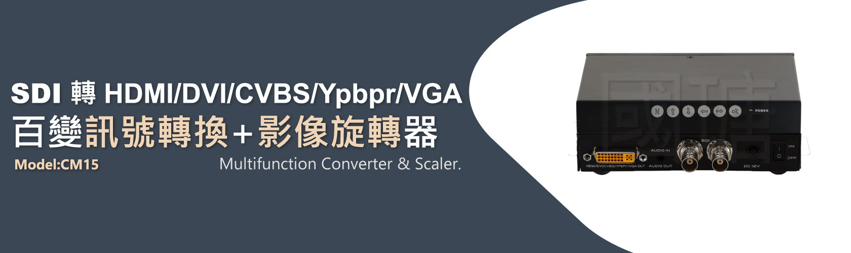 [ CM15 ] 可以將 SDI輸入訊號轉換成為 HDMI、DVI、CVBS、Ypbpr、VGA等輸出訊號.
