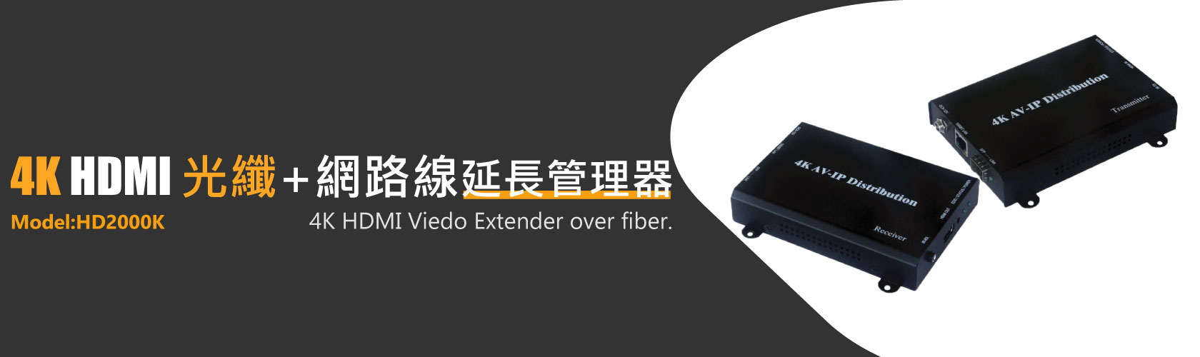 [ HD2000K ] 4K 30Hz HDMI 訊號透過光纖線或網路線 (滿8芯Cat6網路線)傳輸,距離最遠可達60公里, 內建自動EDID可快速偵測訊號源和顯示設備。